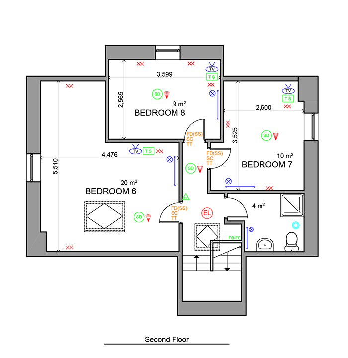 The bedrooms are spacious and include double or 3/4 beds, wardrobe, desk & chair, and are provided with locks to doors, T.V aerial point and Cat. 5 internet point .