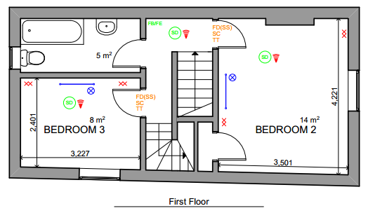 Three bedrooms are a good size and include double beds, wardrobe, desk & chair, and are provided with locks to doors, T.V aerial point and Cat. 5 internet point .