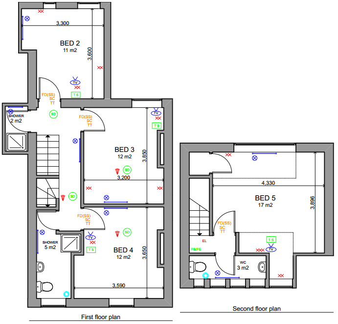 The bedrooms are spacious and include double or 3/4 beds, wardrobe, desk & chair, and are provided with locks to doors, T.V aerial point and Cat. 5 internet point .