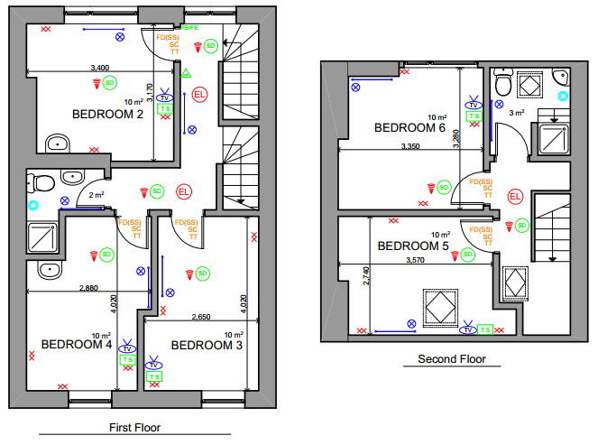 The bedrooms are spacious and include double beds, wardrobe, desk & chair, and are provided with locks to doors, T.V aerial point and Cat. 5 internet point .